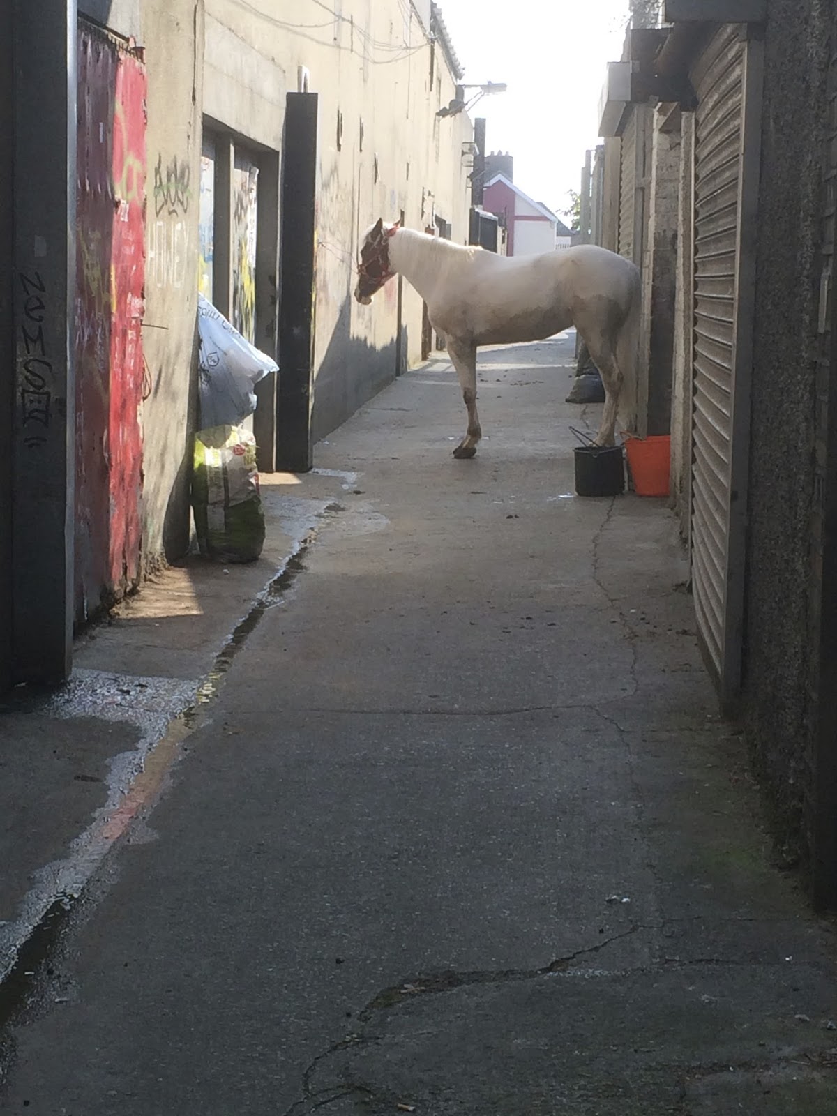 - Mark’s horse standing in the sun in Molyneux Lane, and