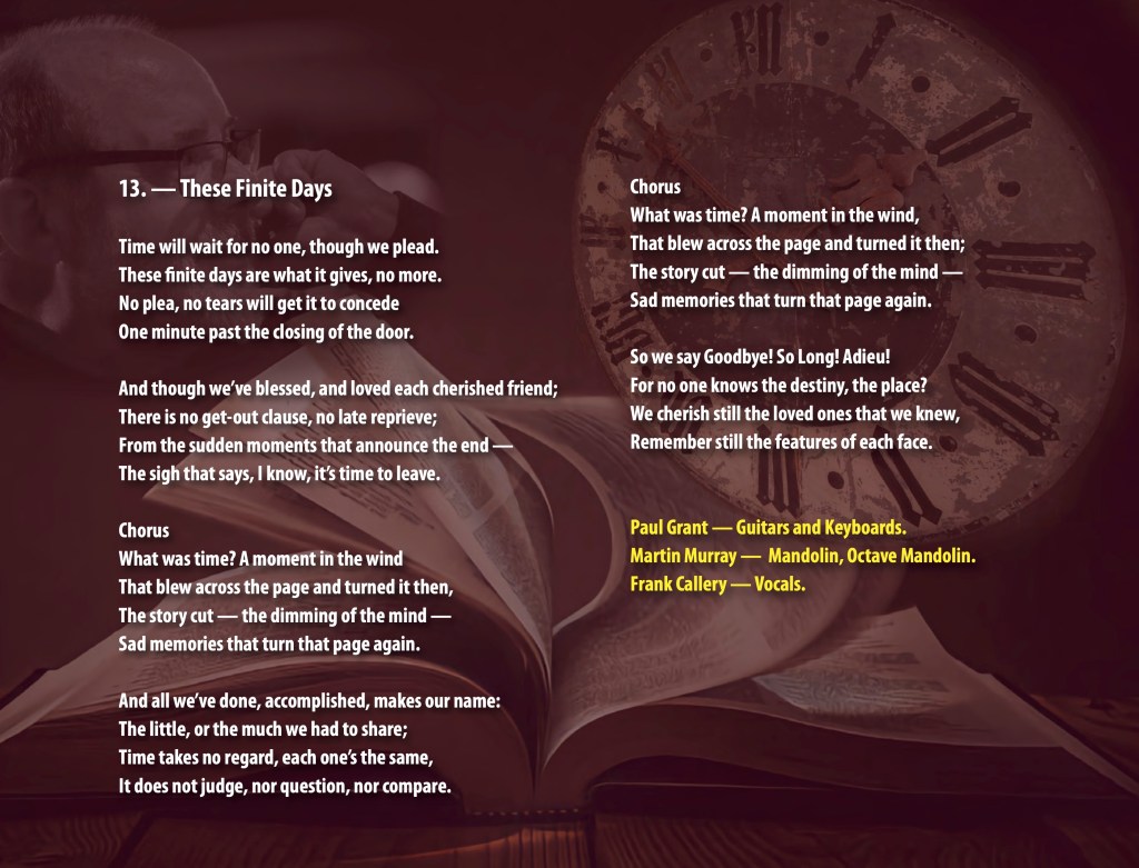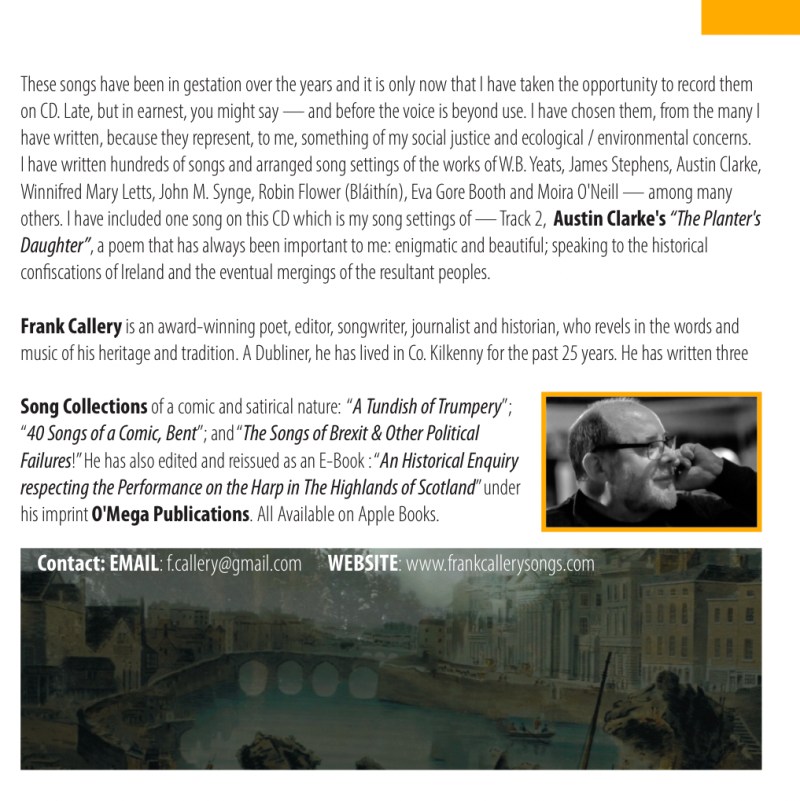 CD or DIGITAL DOWNLOAD of my Album ‘Songs from a Life’ is €12. For thirteen critically acclaimed songs together with a downloadable .pdf Lyrics Book and background.