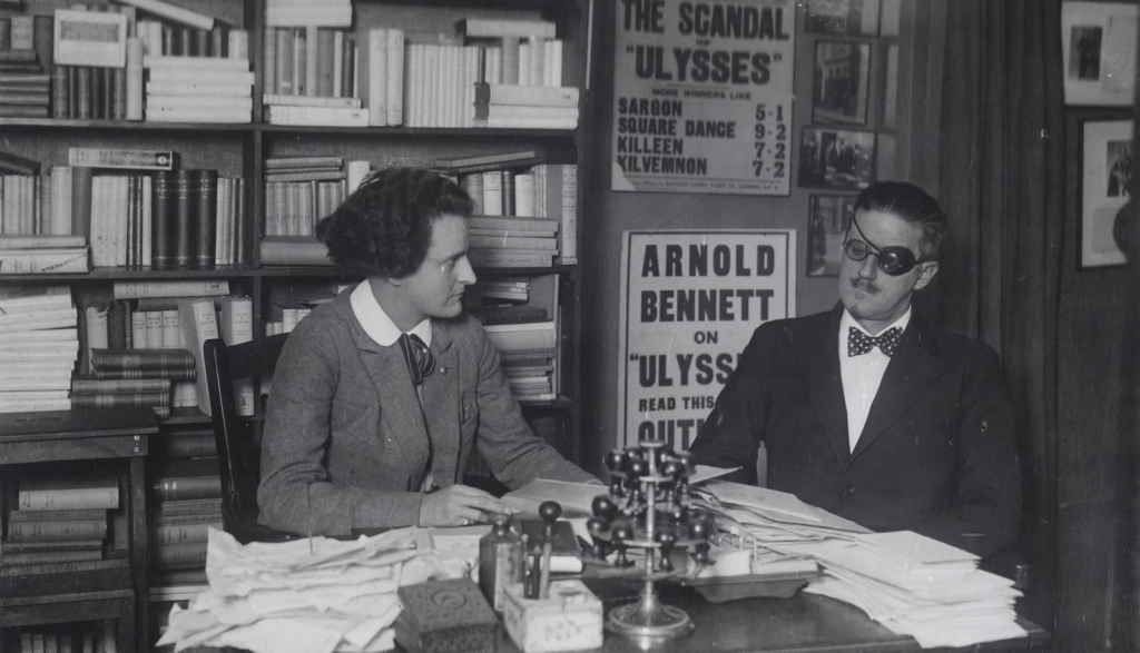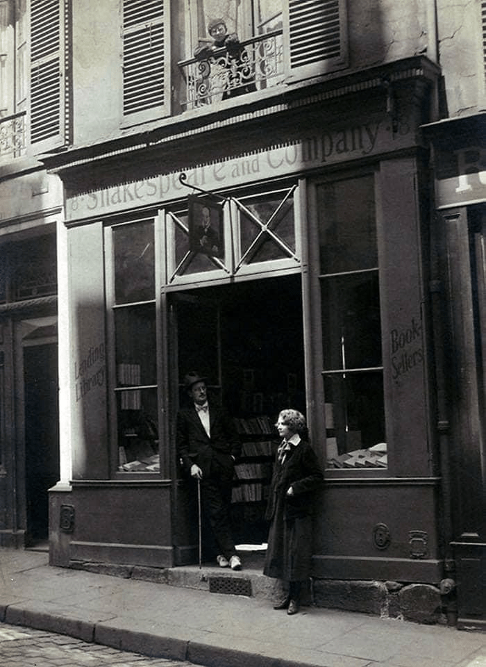 I am grateful to David Holbrook for sight of this great picture. We will, perhaps, never know the identity of the little wee lad at the window. But he is a balcony player in the play of the sacrificial moment. Nor shall we ever know the identity of the other two watchers. There seems to be contention about the address of this shop. O the Rue de l’Odéon at Number 12, there is a plaque stating that this was the location of the shop, and Sylvia’s apartment. Yet in this picture the Shop fascia sign says N0. 8? Any takers?